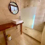 Cette villa présente une salle de bains avec une toilette séparée et une douche. Des draps de bain sont également fournis pour votre confort.